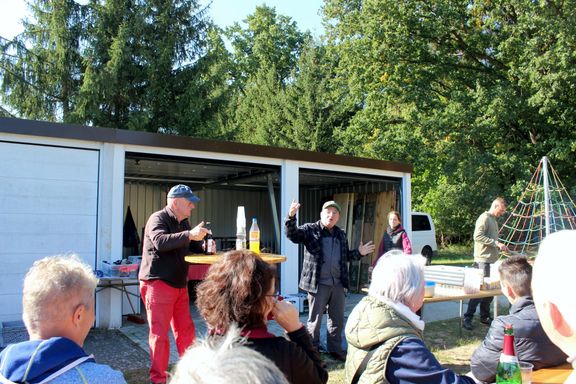 Bei herrlichem Herbstwetter und in entspannter Atmosphäre konnten eine Reihe von Arbeiten verrichtet werden, die wesentlich zur Verschönerung des Dorfbildes beitragen (z. B. Farbanstrich des Sportplatzgeländers, Regalbau in der Garage, Schlaglöcher im Seeweg beseitigt, Freischneiden des Wiesenweges, Teile der Tanzfläche auf dem Festplatz aufgenommen).
